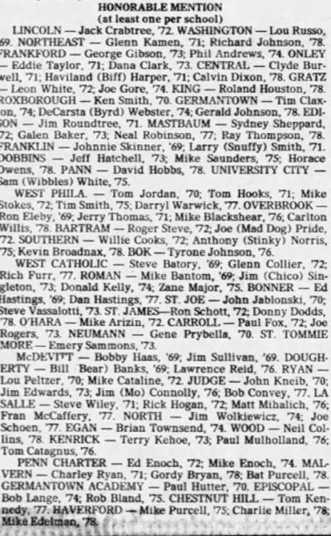 Picked by Ted Silary for the Daily News in April of 1978. Selections based on high school perforamnce.