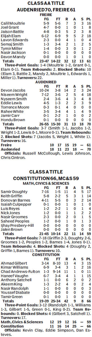 Note: After the quarterfinals, Pub officials realized Audenried was AAA enrollment. Result was allowed to stand.