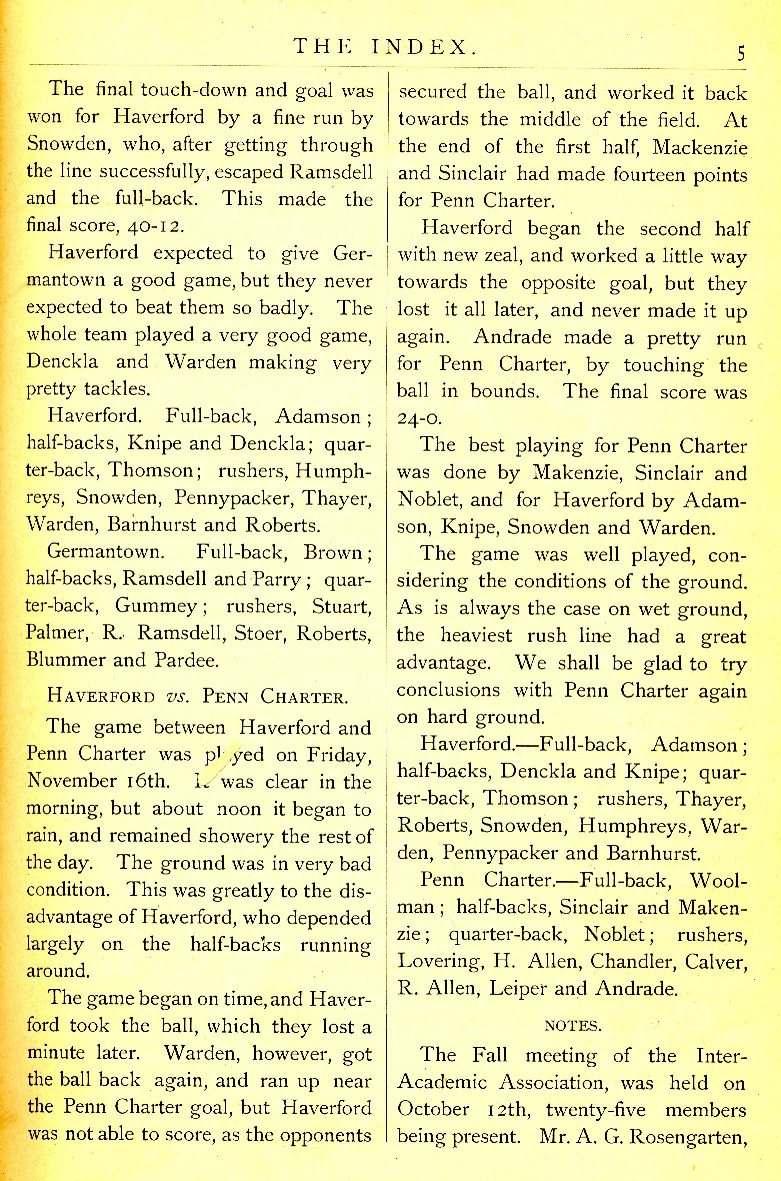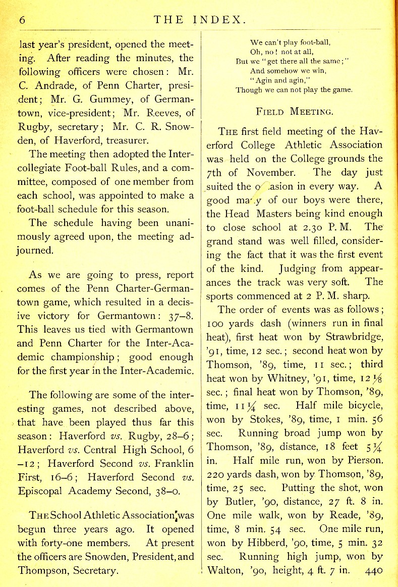 In 1888, as a first-year member, Haverford