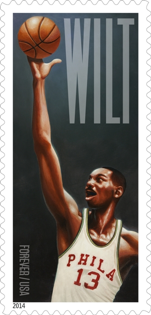 Basketball icon Wilt Chamberlain will be immortalized on two towering Limited Edition Forever stamps Dec. 5