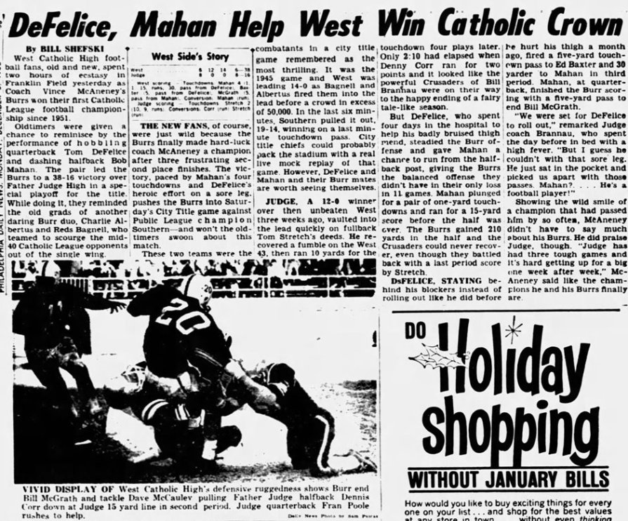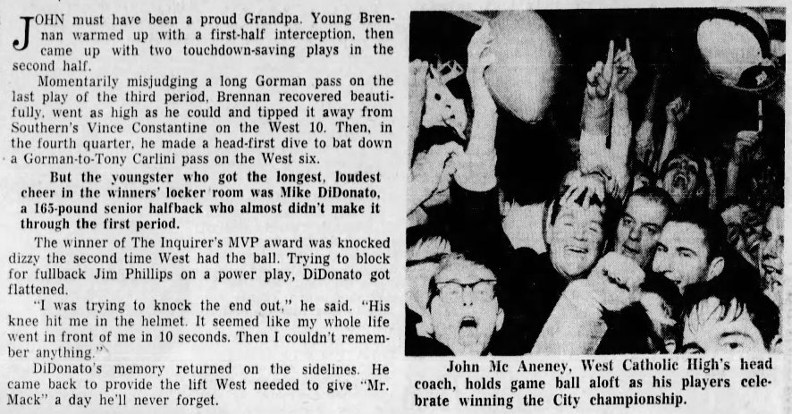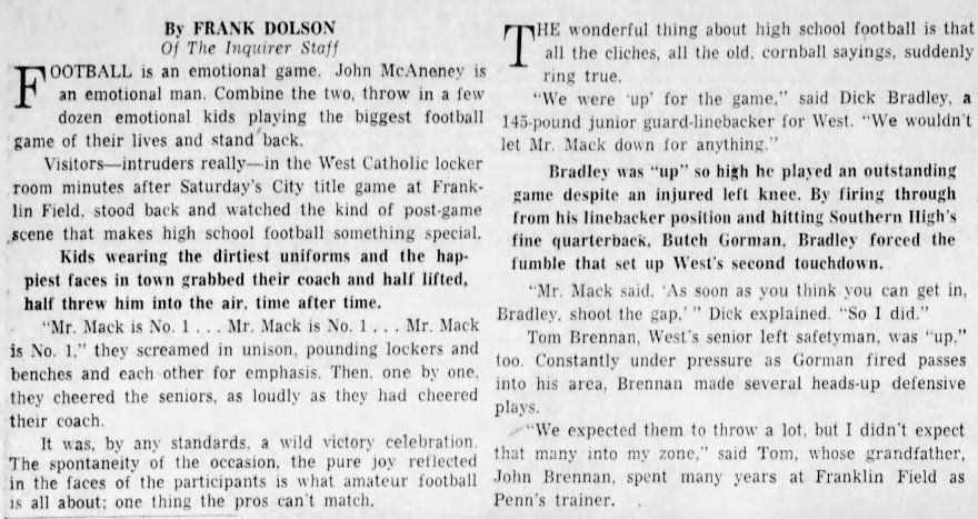 This column was written after John steered West Catholic to the 1965 City Title . . .
