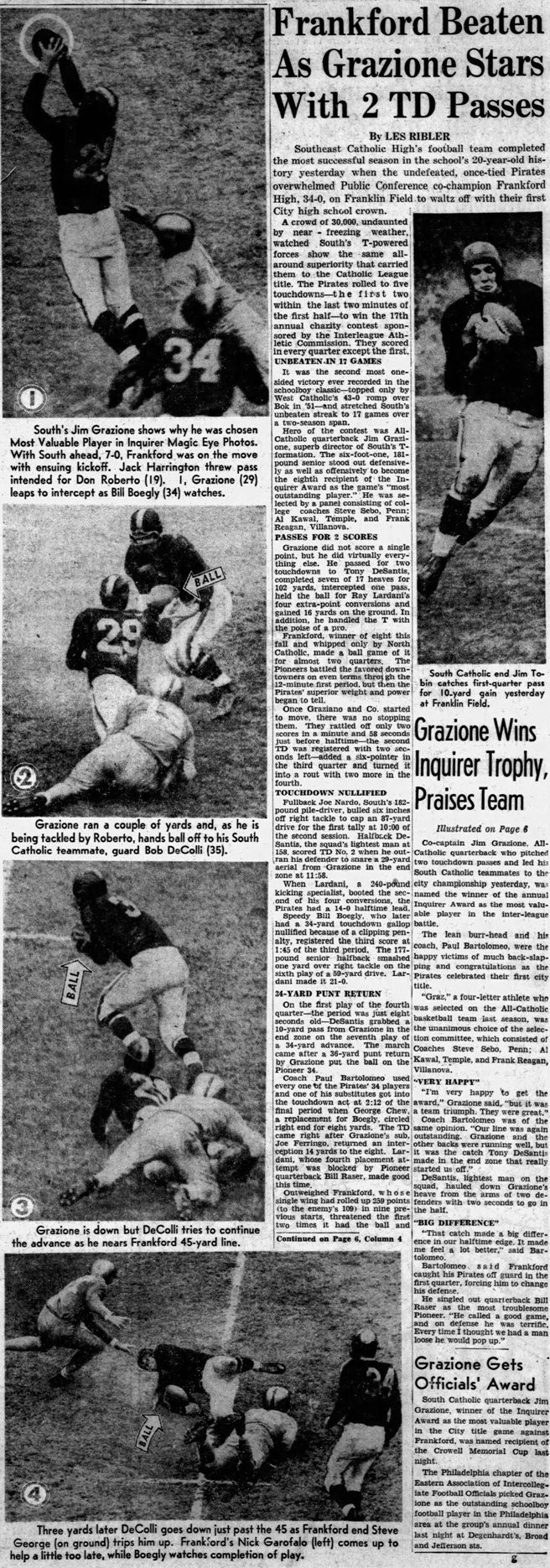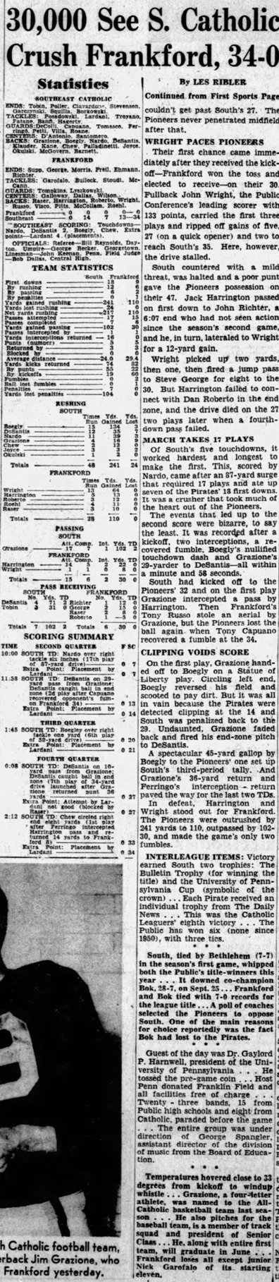 Paul "Bart" Bartolomeo Tribute Page Paul "Bart" Bartolomeo coached the football team at South Catholic (a k a Southeast Catholic), Bishop Neumann and St. John Neumann for 33 seasons (1946-78), winning xxx games, two Catholic League championships and one City Title(along with a tie in another CT). This story was written before he coached the Pirates for the final time . . . By Ted Silary