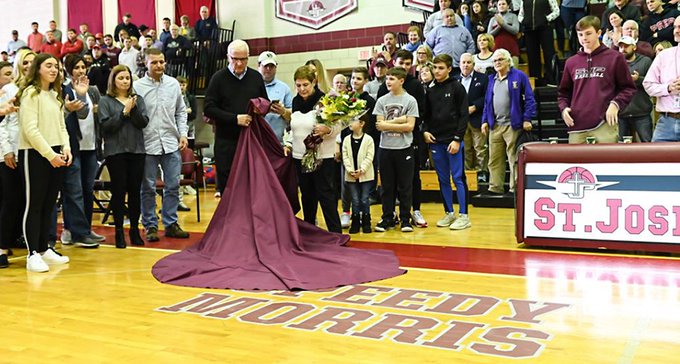 | Speedy Morris Celebration Page This story, which perfectly captured Speedy's career and his impact on so many, was written after he coached his final Catholic League regular season game By Kevin Callahan And, the memories … “We met on this court,” Prendergast said, shaking his head to the circle of life he was experiencing Sunday afternoon at La Salle College High School. “It was 1965 and Speedy was coaching St. John the Baptist (Manayunk) and I was coaching Saint Timothy (Mayfair) and we played in the second round of the CYO tournament here. “I knew he was a good coach and demonstrative, but what I remember most is when we were shaking hands after the game, he said to me, ‘my scouts didn’t tell me how good your press was,” Prendergast said laughing. “I was thinking, ‘you have scouts, I was just hoping to find my station wagon to drive the team home,’ and we stayed close all these years.” The story by Prendergast really punctuates the success of Morris as a coach and a person. As a coach, Morris did what other coaches wouldn’t at every level to prepare his team, to give his team an edge. As a person, once you were a friend of Morris, you were a friend for life. “It’s really been overwhelming, everybody saying so many nice and warm things,” Morris said before the Hawks defeated La Salle 59-56 as the Prep improved to 12-10 overall. “I wish we were winning a few more games but …” “It’s really humbling,” Speedy added quickly. “I’m seeing so many people and I’ve met so many people in basketball, it’s been a blessing.” Morris, 77, announced in December his retirement at the end of his 19th year at the Prep and 52nd season coaching on the high school and college levels due to health issues. Thankfully, the end isn’t here yet as the ninth-seeded Hawks move into the first round of the Philadelphia Catholic League playoffs on Wednesday at 5 p.m. at Archbishop Carroll. “It definitely is in the back of our minds,” said senior forward Chris Arizin after scoring eight points, admitting not wanting the career of Morris to end this week. “He is such a legendary coach and this could be his last game, our last game, and we don’t want either of those so we are going to play our hearts out every game.” Only the hearts of the many who played for Morris at Roman Catholic, Penn Charter, La Salle University men’s and women’s teams, and St. Joseph’s Prep can tell how his 1,000-plus wins doesn’t do justice of the impact the kid from Manayunk has had on the Philadelphia basketball community. “He is a really caring guy and is very personable and everything he teaches really carries over.” Mike Keenan, a senior guard, drained five 3-pointers and scored 18 points for the Prep in front of a packed gym that gave Morris a standing ovation before the game while players on both teams wore t-shirts with “52 Seasons - Philly Legend, One of a Kind” on the backs. “We love him, he is a Philly original,” La Salle coach Mike McKee, who played at Roman Catholic, said. “There is Rocky, there are soft pretzels, there are cheesesteaks and there is the Liberty Bell and there is Speedy Morris. “He is just an unbelievable person and I’ve always admired him and it means a lot to just be a part of this. Keith Morris played for his dad at La Salle and has been by his side on the Prep bench. “I think the greatest thing about him is the older he has gotten, some of the stuff he would have been harder on the kids about, he has a softer approach,” Keith said. “I think one of the things that strikes me most about him and he has said it multiple times, is the greatest gifts he has ever been given is invitations to former players weddings, invitations to their children‘s christenings. Some of his former players are his best friends. He takes more pride in seeing them go out and be a hard working family man than anything, it is beyond basketball. | SEASON BY SEASON TOTAL RECORD CATHOLIC LEAGUE TITLES