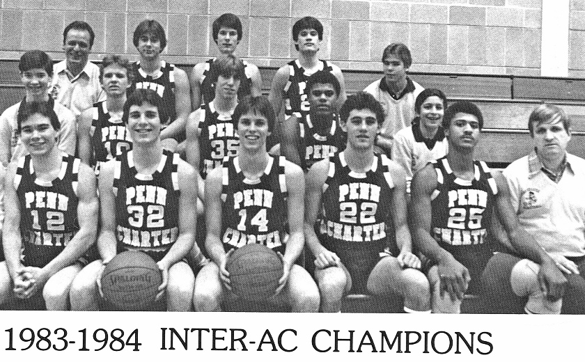 Coach Speedy Morris (front, R) with Penn Charter's 1984