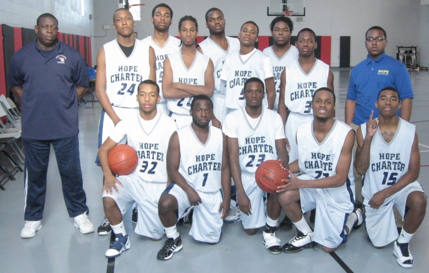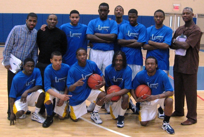 Back, L to R -- coach Gary Hines, John Creighton, Khalif Huett, Frank Briggs,