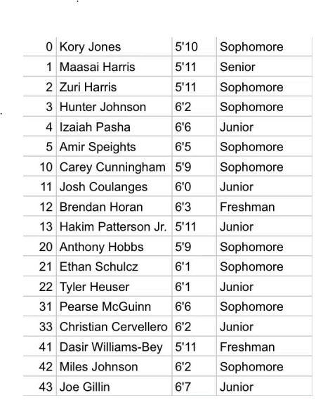 | 1 | Kyle Jones | G | 2023 | 6'4" |