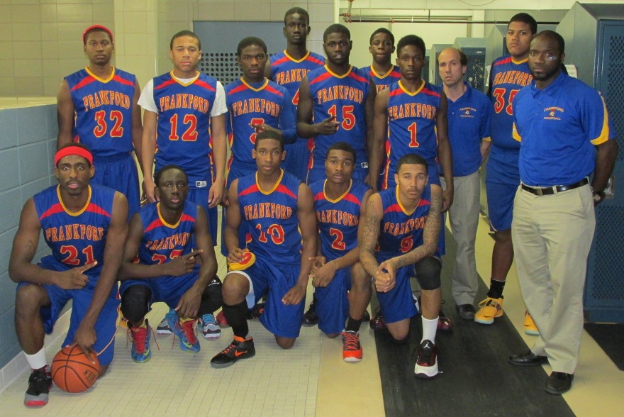 Frankford's players, wearing old La Salle uniforms, before the start of a non-league game.