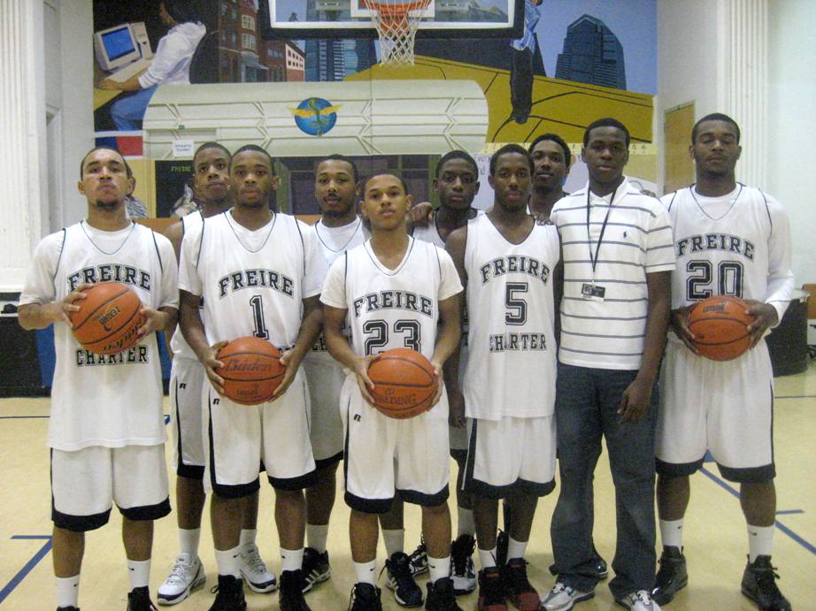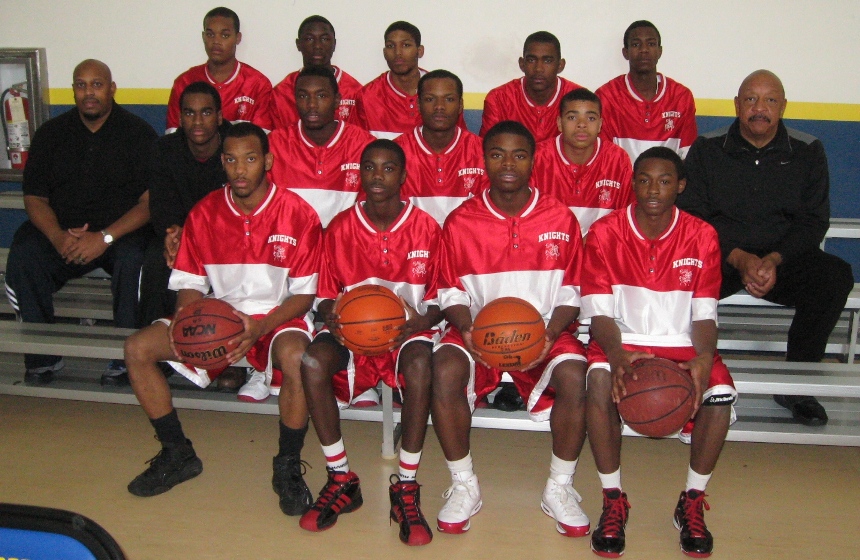 Back, L to R -- coach Gary Hines, John Creighton, Khalif Huett, Frank Briggs,