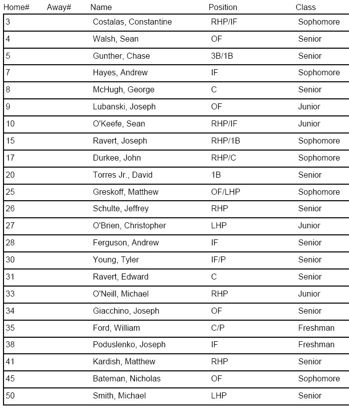 | 20 | John Rizzo | 1B/OF | Jr. |